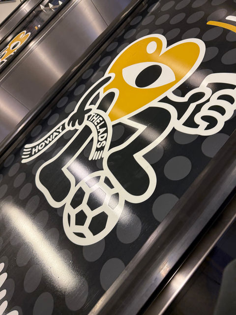 The installation coincided with Newcastle United’s 2025 Carabao Cup victory, with murals, banners, and graphic displays transforming key areas of the city centre. Notably, Monument Metro station was fully branded, with artwork extending across platforms and escalators.