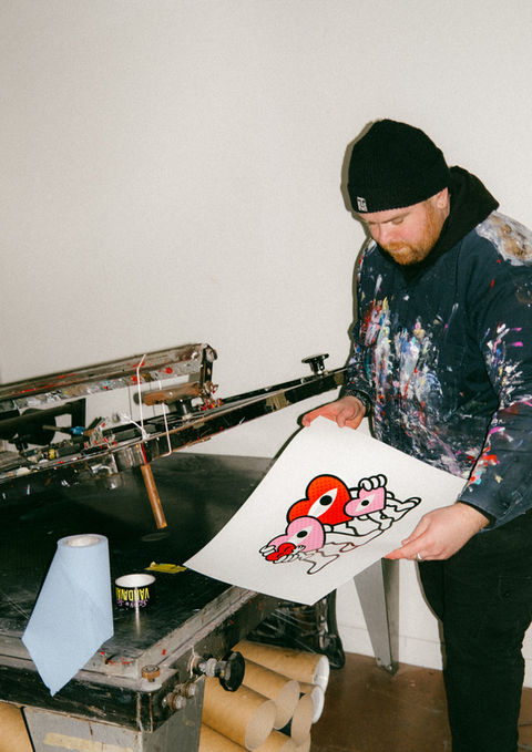 Mul began teaching himself screen-printing at the age of 14, producing his first stickers in his parents’ garage. For more than a decade, the medium has remained a core part of his practice. Today, he produces Electrik Press prints in-house as well as his own and has also collaborated on screen-printed works with artists such as Penfold, Prefab77, and KMG.